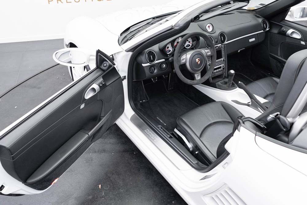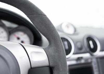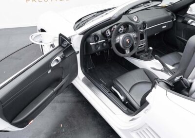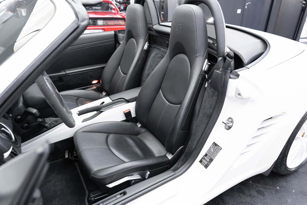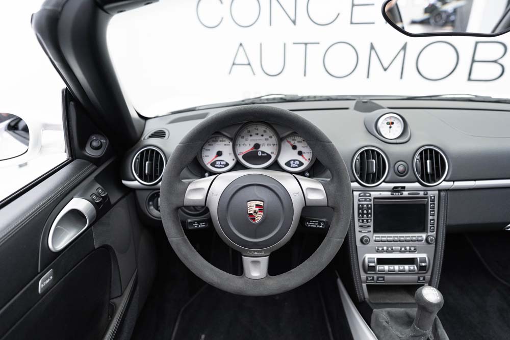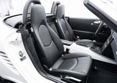 La Boxster S Design Edition 2 fait partie de ces rares modèles pensés pour les passionnés les plus exigeants. Produite à seulement 500 exemplaires dans le monde, elle incarne la pureté de la ligne Porsche, sublimée par une configuration exclusive : blanc intégral, fond de compteur assorti, volant Alcantara, jantes peintes couleur carrosserie. Une Porsche à part, à la fois légère, vivante, et parfaitement équipée, pour un plaisir de conduite authentique, en boîte mécanique, avec un flat-6 atmosphérique de 303 ch.